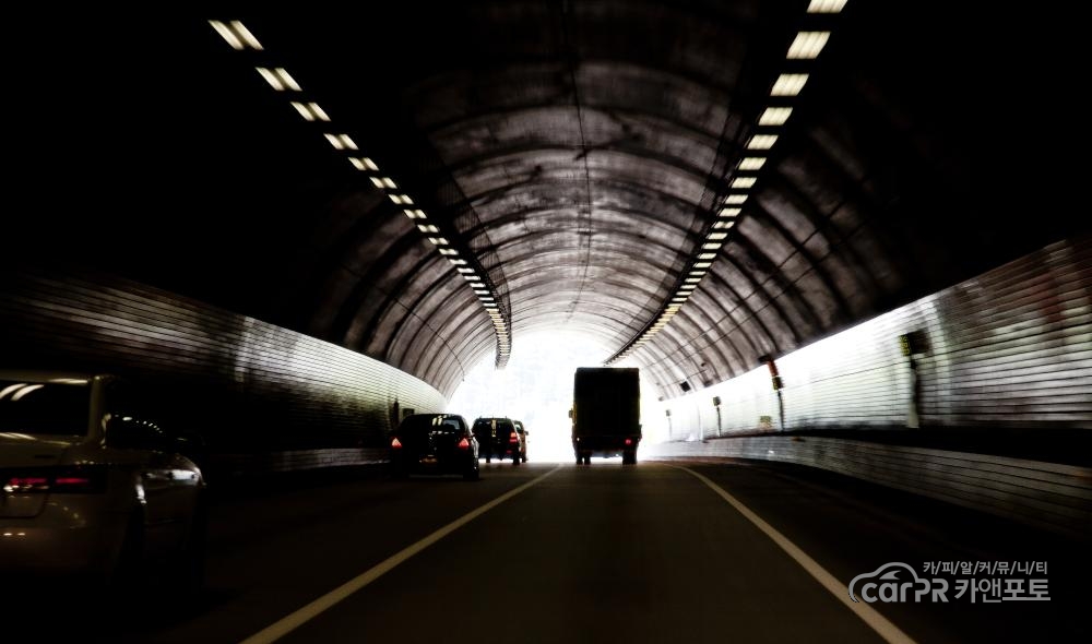 터널을 빠져나가는 자동차들을 강조하여 찍어 봤습니다.