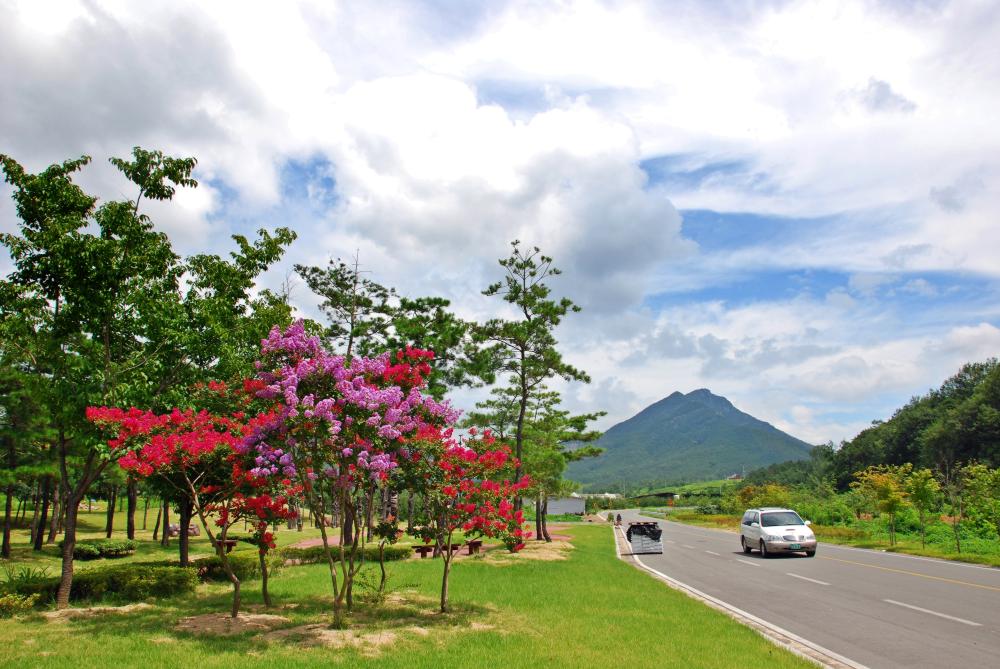 키워드: 파란,하늘,구름,바람,꽃,산,정원,공원,도로,길,여름